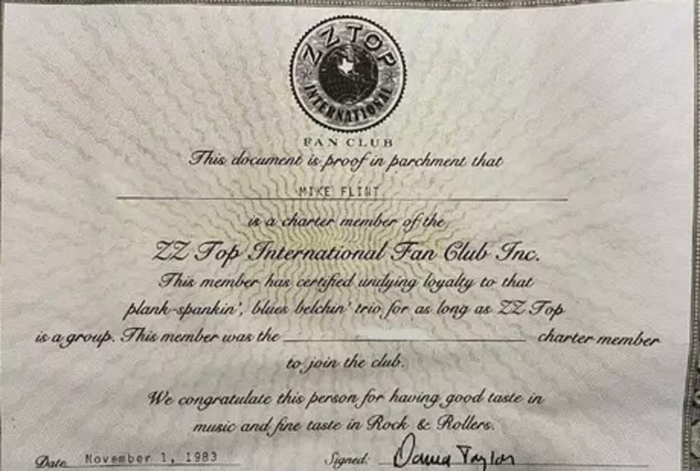 Mike bought a lifetime membership to the ZZ Top Fan Club back in 1984. It cost $100, which must have seemed like a fortune at the time.